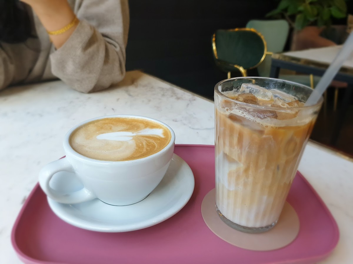 As you step inside, you'll be greeted by stunning marble accents and golden trims, creating an ambiance that feels both elegant and cozy. The interior design is thoughtful, with comfortable seating that invites you to linger. Whether you're catching up with friends over lush desserts or savoring a moment of solitude with your favorite drink, the café provides the perfect setting.